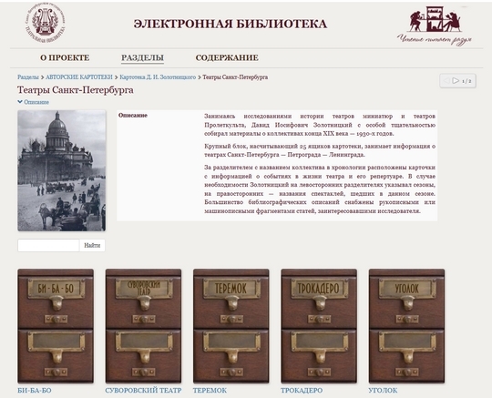 - библиографическое и архивное описание материалов в электронных коллекциях, индексирование документов по тематике, автору, именам, географическому положению, организациям и т.д.;